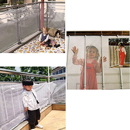 Features: - Protect your kids from squeezing through banisters with this durable, weather-resistant play yard netting - Prevent infants, toddlers, pets or toys and other items from falling through the breaches of the handrail - Suitable for either indoor or outdoor use, this washable white mesh netting adjusts to fit most railings - For shorter railings, simply roll back the netting to fit the desired area, or for longer railings, connect two Railnets together with the provided hardware.