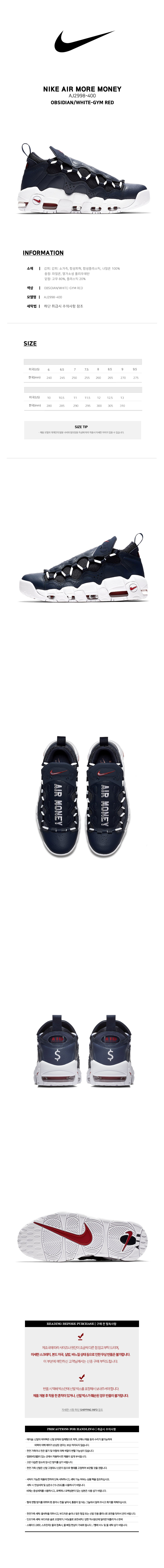 [해외배송] ナイキ MEN エア モア マネー ネイビー AJ2998-400 AJ2998-400