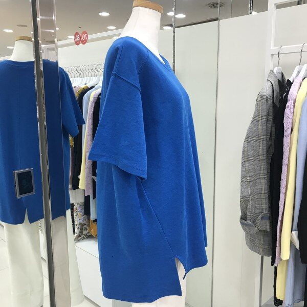 뒤트임 루즈핏 라운드 티셔츠입니다루즈한 핏감(체형커버)으로 여리여리해보이며 쨍한 색감으로 청바지 하나에만 입어도 스타일리시해보인답니다힙 덮히는 기장감으로 편하기 착용가능하답니다총장 76cm(FREE)