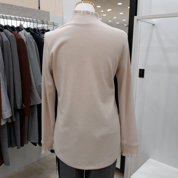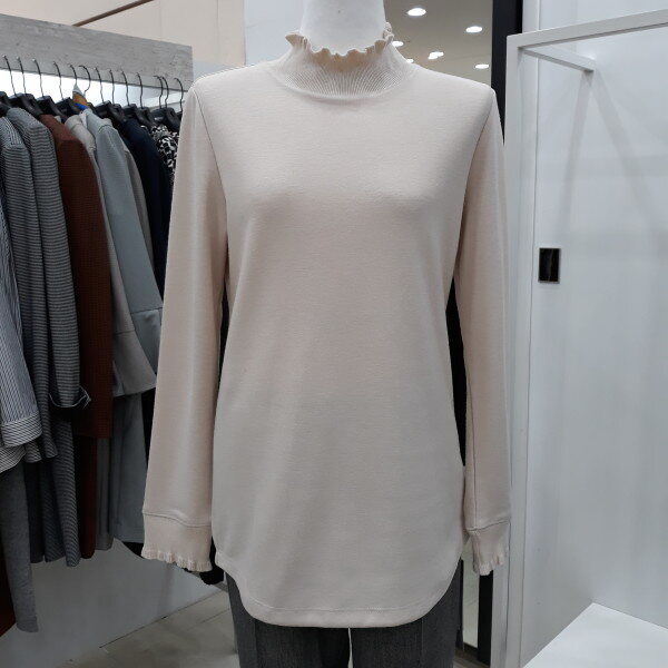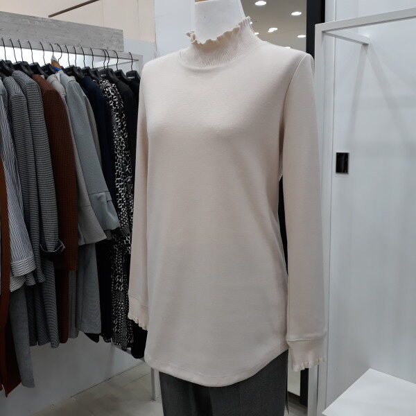넥라인과 소매부분의 프릴스타일로 여성스러운 니트입니다.