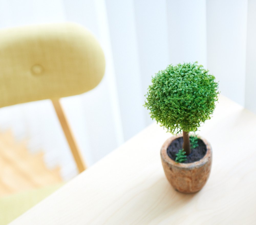 One of the next generation interior shapes with added value not only interior but also functional aspect is a photocatalytic processing population foliage plant.