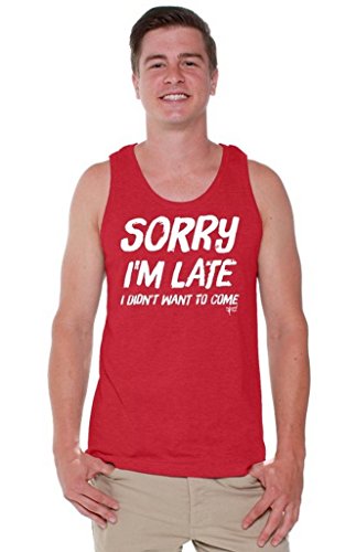 (Awkward Styles)/Men/T-Shirts/DIRECT FROM USA/Awkwarddesigns Men's Sorry I'm Late Tank Top White Humor Slogan Tank Bookmark