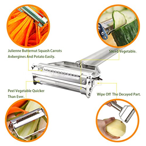 Vegetable Peeler & Julienne Slicer With Cleaning Brush. Ultra Sharp Blade, Stainless Steel. Suit for Peeling Carrot, Potato, Parsnip and Eggplant. Sold by BestCook