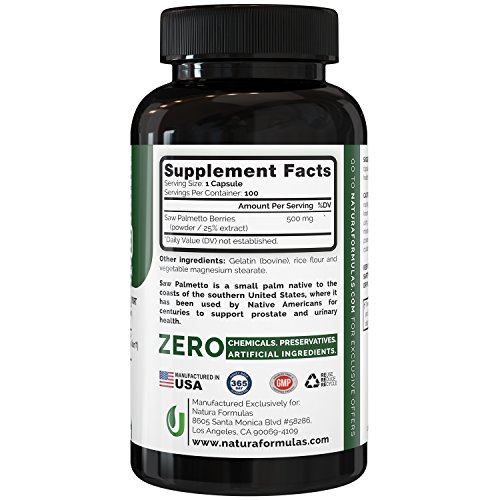 - Feature : ✚ STOP FREQUENT TRIPS TO THE BATHROOM ✚ Do you wake up in the night to visit the bathroom with very little result? As you age the feeling of needing to urinate can increase but this doesn't need to be the case. An enlarged prostate is inevitability for some, but it doesn't have to be a burden. With our blend of Saw Palmetto, we make sure you get the perfect dose of Beta Sitosterol. Saw Palmetto berries are commonly used to improve the health of your prostate. / ✚ BLOCK DHT & FIGHT HAIR LOSS NATURALLY ✚ Lions Mane ✚ Through extensive research, we've found that this all natural supplement helps to decrease DHT, which is the hormone that causes hair loss. When successfully suppressed, the absence of this hormone allows for the body to stimulate hair growth, helping to restore you confidence a prevent balding. DHT is thought to cause 95% off the cases of genetic baldness in both men and women. / ✚ NATURAL, SAFE & EFFECTIVE PROSTATE SUPPORT ✚ Age is just a number ✚ It doesn't have to be a symptom. Natura Formulas bring you pure Saw Palmetto in easy to take capsule form without fillers or by-products to help improve prostate, sexual, and urinary health! It also helps to boost testosterone in your system, offering improvements to your energy, libido, and hair thickness! / ✚ NATURAL TESTOSTERONE BOOSTER ✚ Feeling young again ✚ As men age, our testosterone levels drop. To keep your energy and libido up, it's imperative that your body produces enough testosterone, and our supplement is a sure fire way to enhance your aging body's ability to do so! Bring back the energy you had in your twenties with Natura Formulas' Saw Palmetto. / ✚ MANUFACTURER GUARANTEE ✚ We are proud to say that our products are formulated and manufactured in the United States in a FDA registered facility that is both NSF and GMP certified. You are protected by our 365 Day "You Must Be Thrilled!" Guarantee! So, if for any reason you're not satisfied with your order, simply notify us and we'll make arrangements for you to receive a full refund or replacement, no questions asked!