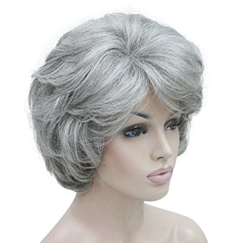 Lydell Women's Short Curly Wavy Wig Synthetic Hair Full Wig 6 inches (#51 Silver Grey) Great Mothers Day Gifts