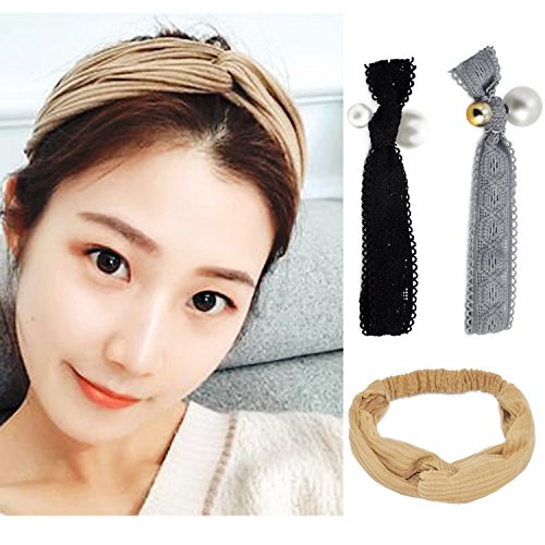 Pacakge contain:1x brown headband + 2 pearl hair ties(1 grey,1 black)