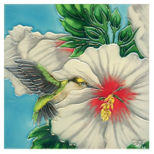 Continental Art Center BD 2257 Hummingbird with White Hibiscus Art Tile, 8 by 8-Inch