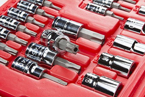 TEKTON Star Bit Socket and E Socket Set for 1/4-Inch, 3/8-Inch and 1/2-Inch Drive Ratchets, 35-Sockets | 1354