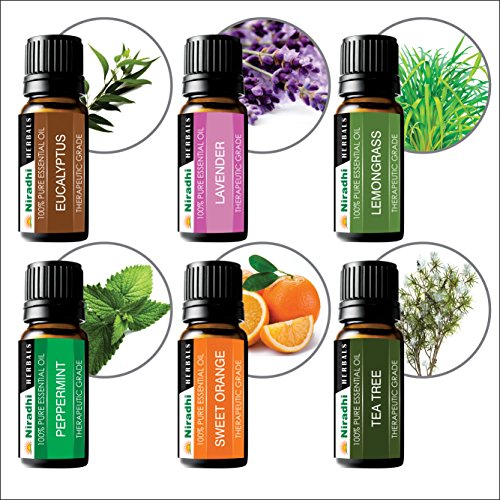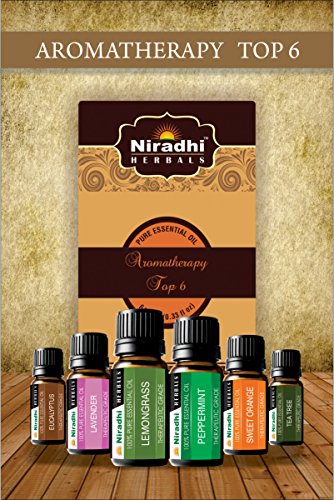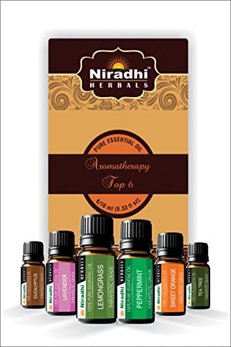 Aromatherapy Top-6 Essential Oils GIFT SET by Niradhi Herbals 6/10ml: Eucalyptus, Lavender, Lemongrass, Peppermint, Sweet Orange & Tea Tree....