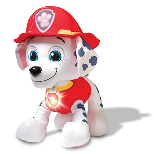- Perfect for bedtime or playtime! Just squeeze Marshall’s badge to hear phrases directly from the Paw Patrol show!