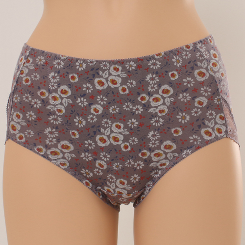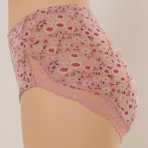 부드러운 마이크로 모달 스판에 잔꽃 패턴의 여성스러 운 부인군 제품으로 밑위를 올려 속싱을 데주어 편안하 게 배를 눌러주고 다리둘레를 자카드 레이스를 사용하 여 힙을 감싸주는 레이스 힙 스타일의 제품입니다