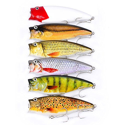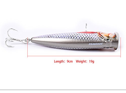 -. Feature : GREAT MUST-HAVE ITEM FOR ANGLERS - Widely Targeting At Predator Fishes Such As Catfish, Perch, Bass, Redfish, Trout, Bream, Muskie,Roach, Walleye etc For Both Freshwater and Saltwater. Well-packed And Gift-wrap available - Perfect Gifts For Birthday, Anniversary, Thanksgiving, Christmas etc. / WELL-DESIGNED AND WELL-MADE - 3D Life like Fish Eyes With Fish-Attracting Laser P.R.Inted Body Provides Excellent Appearance Of Fishing Lures. While Double Flat Strong Rings And #4 BKB Hooks Offers Continuous Metal Flash and Special Vibration To Attract Fishes. Stainless Steel BBs Inside Lures' Chamber To Keep Balance and Casting Long. / ECO-FRIENDLY MATERIAL - With High Performance ABS Material, Which Offers Odor-free and Reusable Fishing Lures, Proberos Popper Lures Is Unmatched in QUALITY and DURABILITY. / 6 COLORS A SET - Gives You Option Of Fishing In Any Water Area Or For Different Targets. Swim Depth: Flapping On the Water. / ***THE MOST IMPORTANT THING*** - Wish You Good Luck In Your Fishing Trip! GOD BLESS YOU! Proberos promise we 100% Stand Behind Our Products.