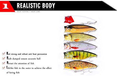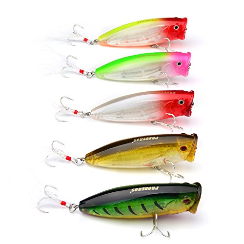 -. Title : Proberos Popper Fishing Lures Set Topwater Baits With Ultra Strength Treble Hooks Fishing Tackle Set