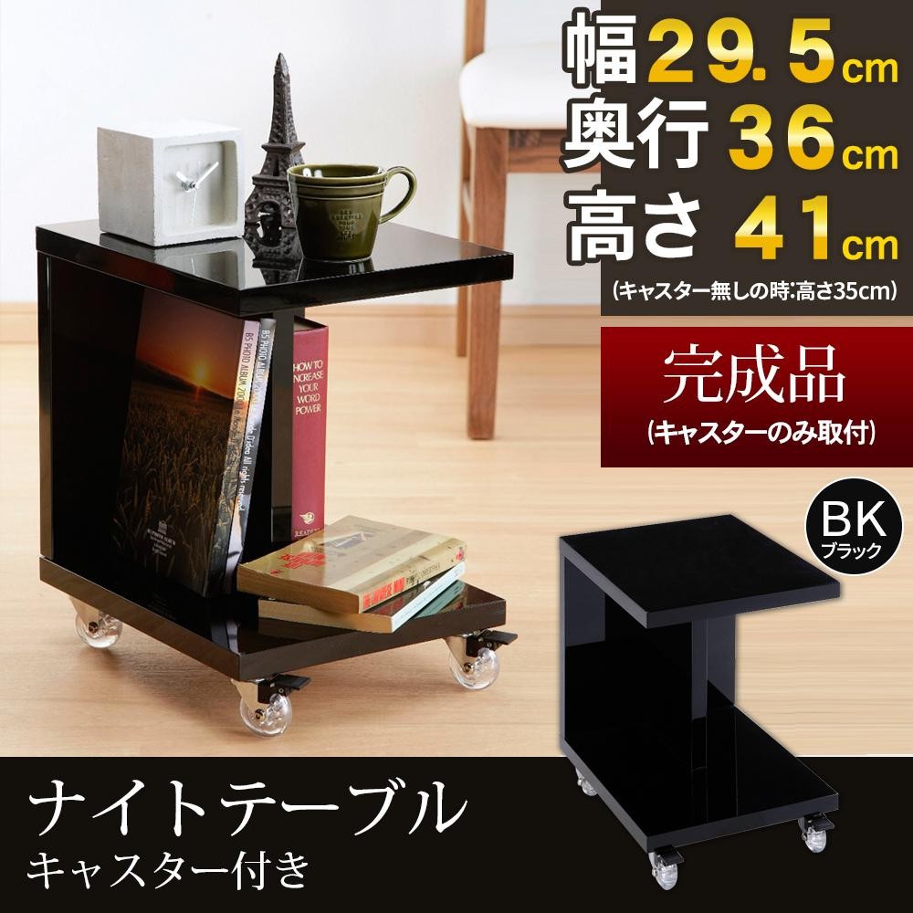 | 光沢感と透明なキャスターがワンランク上の雰囲気を演出するナイトテーブルです。キャスター4個の内、2個はストッパー付き。キャスター無しでの使用も可能です。ベッドサイドにあると便利♪ |