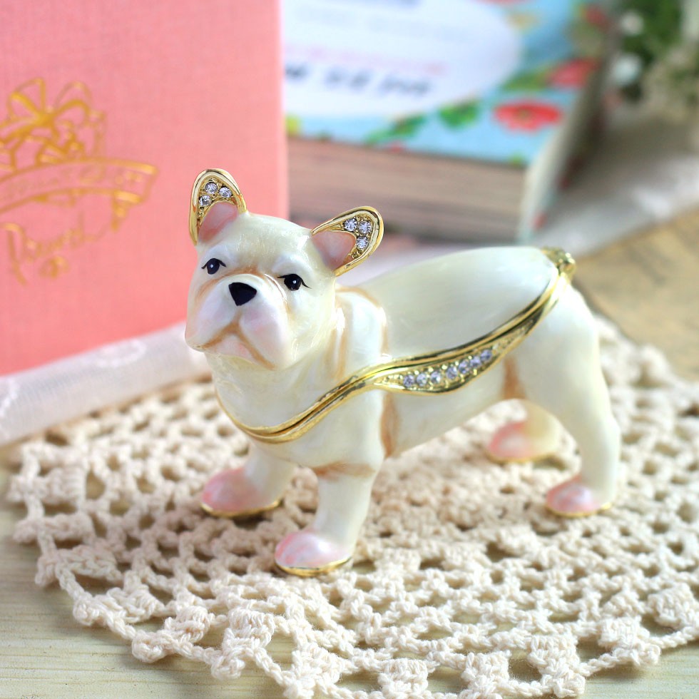 | ジュエリーボックスと言えば、指輪やピアス、ネックレスなどのアクセサリーを入れる引き出し型のケースを思い浮かべる方が多いかもしれません。 ピィアースのジュエリーボックスは、動物や花などをモチーフに作られ、合金製でずっしりとした重さがあります。また高品質のクリスタルガラスを贅沢に使用。まるでジュエリーボックスそのものが宝石のような、高級感溢れる仕上がりです。 小物入れとしても使えるように開閉口には磁石が取り付けてあり、アクセサリーなどなくしやすいアイテムの収納ができます。キラキラと美しく輝く宝石箱は、そのまま飾って楽しめるインテリア雑貨として多くの方に愛されています。 国内トップクラスのジュエリーボックスメーカーであるピィアースは、2004年ごろから本格的に宝石箱の製造を始め、現在のジュエリーボックスはなんと300種類以上。大規模展示会でもご好評いただいており、全国有名百貨店でも販売されています。 自社工場でひとつひとつ丁寧に手作りし、原型作成、研磨、加工、着色、小さなクリスタルガラスの取り付けなども全て手作業で行われるこだわりのハンドメイド品。完成後は厳しい検品の後、丁寧に梱包作業をしお客様にお届けしております。 ピィアース商品は、全国有名百貨店および全国有名宝石店チェーンにてお取り扱いいただいている高品質商品です。 ★自分へのご褒美に…コレクションして並べて飾ると、さらにかわいらしさUP! ★恋人へのプレゼント…中にアクセサリーを入れて、サプライズな贈り物として ★家族への感謝ギフト…お母さんや姉妹へ、日頃のありがとうの気持ちを込めて ★誕生日プレゼント…お友達の喜ぶ顔が見たいから、いつもと違うキラキラギフトを ★小さな女の子へ…まるでお姫様が使っているようなキラキラ宝石箱は女の子の憧れ! |