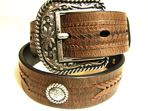 -. Binding : Apparel -. Brand : ARIAT INTERNATIONAL -. Color : Brown -. Department : boys -. EAN : 0753340450836 -. Feature : BROWN WEAVE LEATHER BELT -. ProductGroup : Apparel -. ProductTypeName : ACCESSORY -. Size : 24 -. Title : ARIAT BROWN BOYS / GIRLS WEAVE WITH CONCHOS LEATHER 1 1/4" BELT SZ. 24 -. UPC : 753340450836