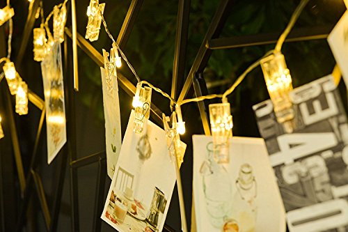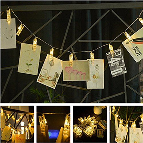 - Photo Clips String Lights with 30 LED: 30 clips are spaced at 12CM apart,enough space for most artworks and photos Each LED bulbs equipped with a transparent clip which can nip photo or other small Items creating romantic and a warm atmosphere, spreading light and cheer across a wide area.