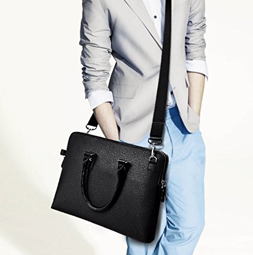 -. Feature : Material: High quality PU leather which is durable and waterproof and durable polyester lining, with custom hardware, heavy-duty zipper. Adjustable nylon long shoulder strap. Can be used as lawyers briefcase, cross-body bag, shoulder bag or laptop bag. Features stylish design, simple but elegant; popular with young men. / Measurement: This briefcase is 38cm long, 8cm wide and 29cm high, handle is 13cm high. Weight: 1.19kg. The size is measured according to object. Please compare carefully with the model photo and size before buying. / Large Capacity: Well designed inner sections, 2 main zipper compartment, 1 computer pocket, 2 small insert pockets, 1 zipper pocket. This briefcase can easily hold all everyday objects, such as 14" laptop, ipad, mobilephone, notebook, files, keys, wallet and all your other basics. / Occasion: Our briefcase is very durable and can hold all of your necessities for your every day use, simple enough to use for work, school, travel or business; A fashion gift for your husband, son and boyfriend. / Back Guarantee: If you are not delighted by our product after receiving it, please return it within 30 days for a full refund of your purchase P.R.Ice. Any problem about the item please feel free to contact us before you left us an bad evalution, thanks.