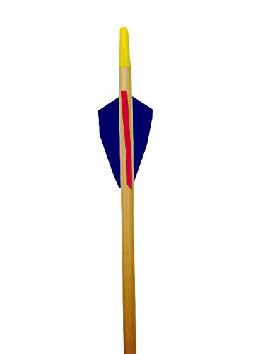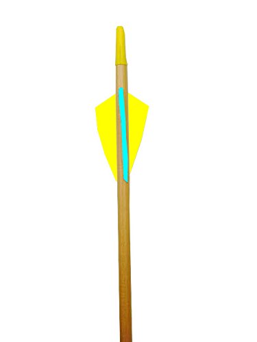 Rose City Archery Port Orford Cedar Arrow for 30-Pound Bow or Less Than 5/16-Inch Diameter/26 1/2-Inch Length Clear Lacquer Shaft (12-Pack), 2.25-Inch Length Fletching, Yellow Cock/Denim Hens
