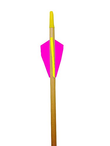 Rose City Archery Port Orford Cedar Arrow for 30-Pound Bow or Less Than 5/16-Inch Diameter/26 1/2-Inch Length Clear Lacquer Shaft (12-Pack), 2.25-Inch Length Fletching, Pink Cock/Yellow Hens