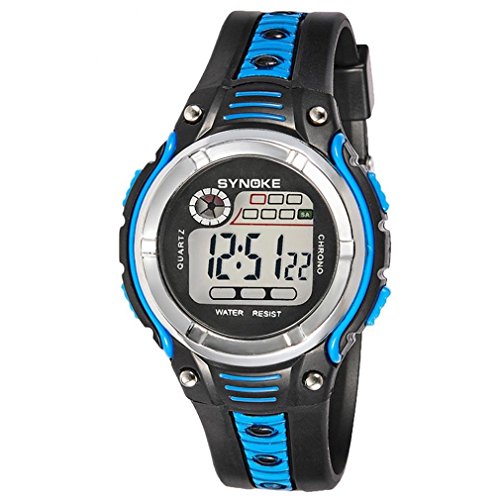 -. Title : SMTSMT SYNOKE Waterproof Boys Digital LED Sports Alarm Date Watch-Blue