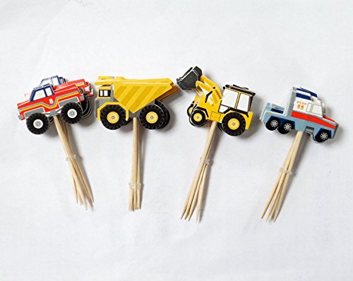 Yunko 24 Pcs Truck Excavator Dumpers Party Fun Cup Cake Decorative Toppers Cupcake Decorating Tools for Party