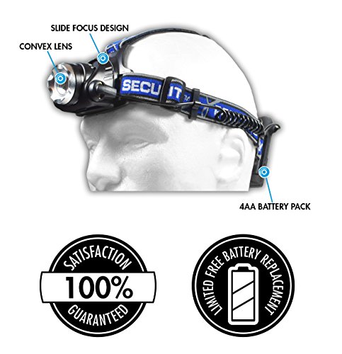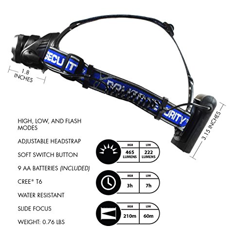 Police Security ELITE BLACKOUT T6 LED 465 Lumen Headlamp for Camping, Walking, Fishing