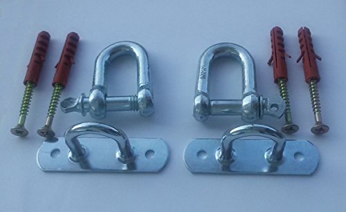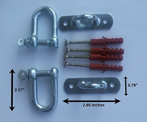 Studio : Markita Publisher : Markita Binding : Misc. Product Description Dimensions:Mount-1/32x2 3/4 Screws-1 3/4 Anchors:1 1/2 , Thickness-1/32 . D ring: 1 1/2 ', thickness 5/16 ' Reliable Suspention Training Support Kit that you may need for permanent or temporary anchoring. We provide you with all tools you may need to use it on any types of places and uses on wall or ceiling. For Concrete Applications use a pre-drilled hole and the use anchor included. One Eye Plank when properly installed can hold up to 450lbs(900lbs Combined for this Kit) which can be suitable for sing it outdoor for swings, hammocks, etc. One Eye Plank with Shackles is suitable to hold your Suspention Systems, Boxing Equipments, Olympic Rings Yoga Swings, Hanging Chairs. Test our product with special Risk Free Purchase for up to 90 Days.Order Now and Get In Shape for less than you have to spend 0