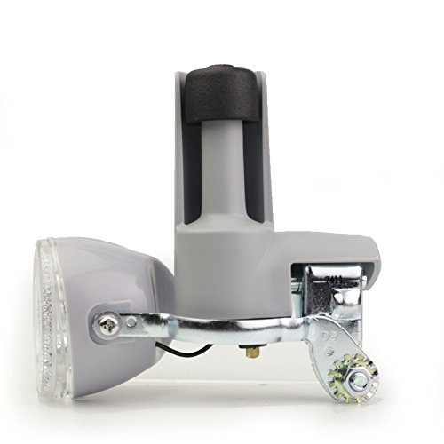 -. Brand : Y-SD -. Color : Grey -. EAN : 7906629397770 -. Feature : Dynamo headlight does NOT hurt bike tyre with cotton cap / Brightness is good even with low riding speed. Reflector design, it is safer / Dynamo headlight source: white LED 1 pcs / Waterproof design includes drain hole and silicone seal ring / Zinc plated bracket( suitable for max diameter 40 mm front fork) and rubber block included. Y-SD Dynamo headlight can be also used for mountain bike. Rubber block avoid to hurt front fork. -. IsAutographed : 0 -. IsMemorabilia : 0 -. Label : MYT Technology Company -. Manufacturer : MYT Technology Company -. MPN : MYT0002 -. PackageQuantity : 1 -. PartNumber : MYT0002 -. ProductGroup : Sports -. ProductTypeName : OUTDOOR_RECREATION_PRODUCT -. Publisher : MYT Technology Company -. Studio : MYT Technology Company -. Title : Bicycle Bike Friction Power Generator Dynamo Headlight