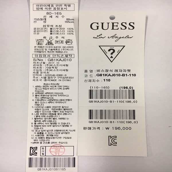 제조자 : 가영복장 퍼스트어패럴