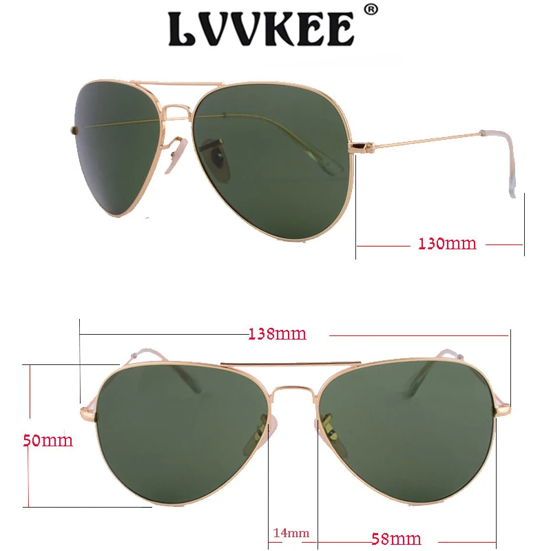 Model Number:3025 58mm glass lens aviator Sunglasses for men UV400 rays oculos