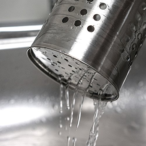 - DURABLE SLEEK DESIGN — Set includes 13.75” Skimmer, 13”Sauce Spoon ,12.75” Rice Spoon, 13.25” Spatula/Turner , 13.50” Slotted Spatula , 12” Spaghetti Spoon, and Crock Holder — Made of stainless steel — Rust-resistant — Easy to clean and dishwasher safe — Slim space-efficient design fits most countertops — Perfect gift for wedding, housewarming, birthday, Mother's Day, and more — Crock Holder Measures approximately 4.50” W x 7” H