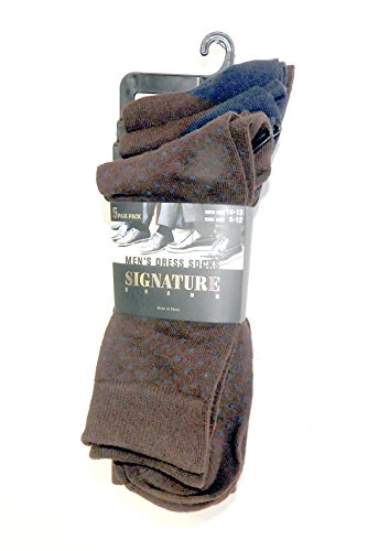-. Binding : Apparel -. Brand : Signature Brands -. Department : mens -. Feature : 5 Pack Men's Drees Socks are perfect for any occasion / Includes 2 P.R.Inted pair and 3 solid colors to a package / Men's Sock Size 10-13 , Men's Shoe Size 6-12 / 97% Polyester, 3% Spandex - Machine Washable for easy care / These socks have a nice weight to them and are made for all year ass season wear -. IsAdultProduct : 0 -. ProductGroup : Apparel -. ProductTypeName : SOCKSHOSIERY -. Size : 10-13 USA -. Title : Signature Brands Men's 5 Pack Casual Dress Sock