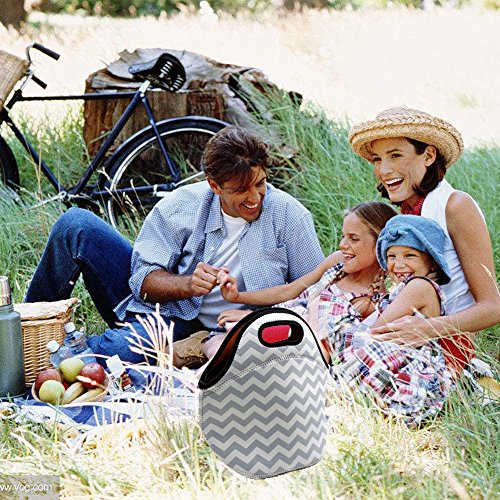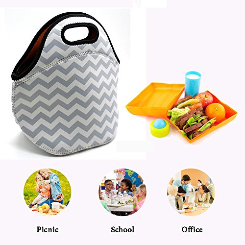 GOOD NEOPRENE MATERIAL--Made of insulated neoprene,let your your lunch will keep temperature for hours,keeps your food fresh.Dimension:7"L x 6.5"W x 11"H,Lunch bag fits containers up to 7"L x 6"W,Package Include:1pcs Neoprene Lunch Bag