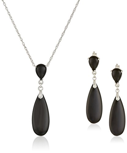 -. Title : Rhodium-Plated Sterling Silver Onyx Teardrop Earrings and Pendant Necklace Jewelry Set, 18"