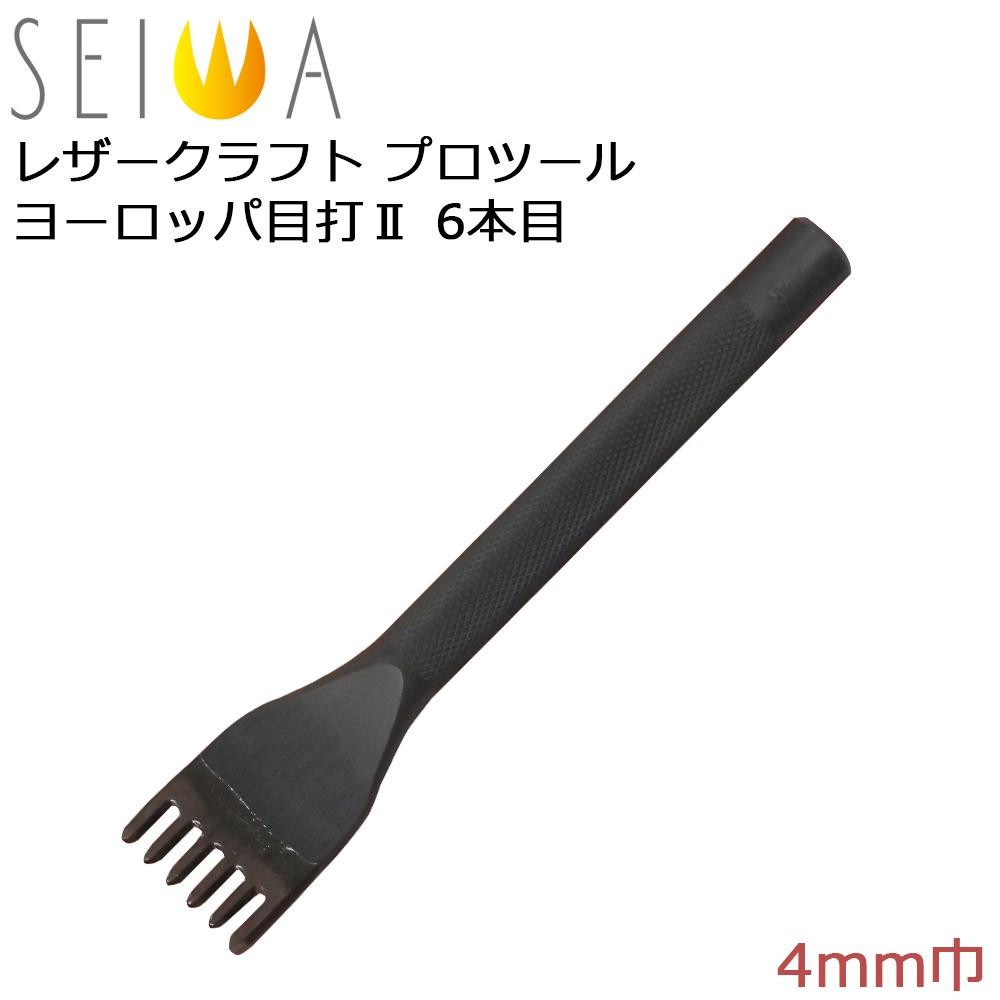 刃先は菱目打のように先端が「点」ではなく、角と角をつなぐ「線」形状になっています。そのため、革の厚みで穴のサイズが変わらず、線状の縫い穴があきます。6本目は長い直線をあけるのに適しています。 |