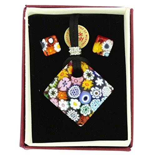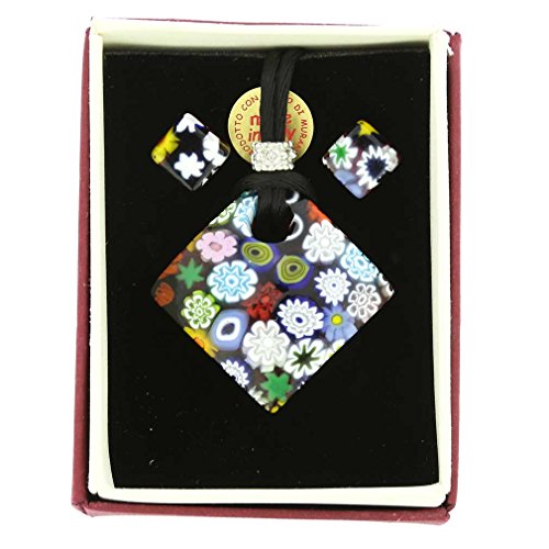 -. Binding : Jewelry -. Brand : GlassOfVenice -. Department : womens -. EAN : 0053926462438 -. Feature : Authentic Murano Glass handcrafted in Venice, Italy / Pendant is approximately 1-1/2" by 1-1/2", earrings - 3/8 x 3/8" / FREE Gift Box and velvet pouch included / Each set is unique with random inclusions - no two items are exactly the same / Ships with attractive velvet pouch and Certificate of Authenticity -. Label : Murano Glass -. Manufacturer : Murano Glass -. Model : EG_AA1088 -. MPN : EG_AA1088 -. NumberOfItems : 1 -. PackageQuantity : 1 -. PartNumber : EG_AA1088 -. ProductGroup : Jewelry -. ProductTypeName : FASHIONOTHER -. Publisher : Murano Glass -. Studio : Murano Glass -. Title : GlassOfVenice Murano Glass Millefiori Jewelry Set - Diamond -. UPC : 053926462438