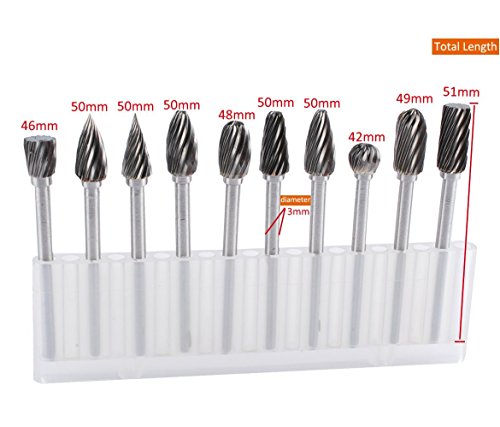 ●Tungsten Carbide Burrs ●Shank diameter: 3mm(about 1/8") ●Shank Length: 35mm ●Cutting edge diameter: 6 mm ●Total length: 42-51 mm ●Material: Tungsten steel solid carbide ●Compatibility: Smaller rotary tools
