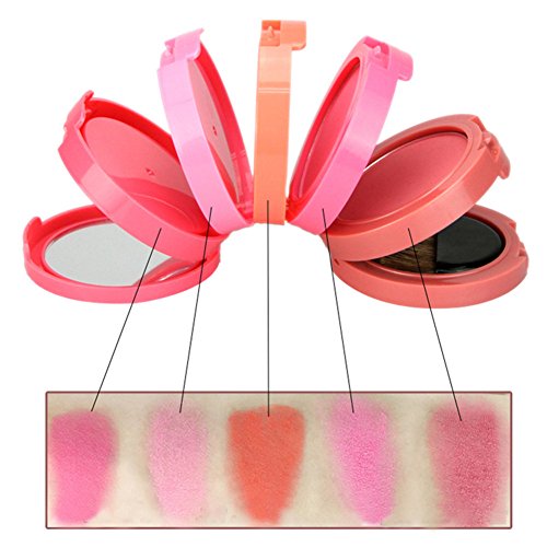 Lolicute Waterproof Smooth and Lasting Natural 5 Colors Blusher Palette with Blush Brush and Mirror