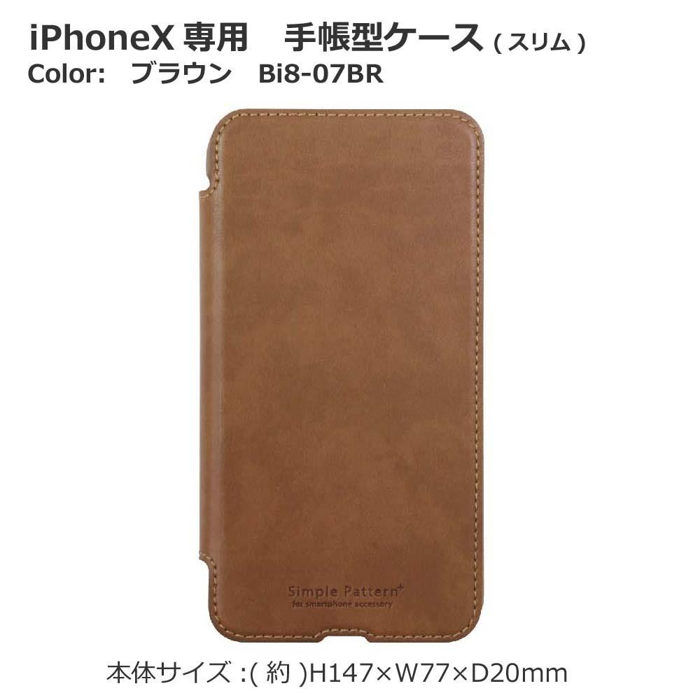 スリムでシンプルな形に仕上げたデザインケースです。 製造国:中国 素材・材質:ハードケース/PC(ポリカーボネート)生地/PUレザー 商品サイズ:約H147×W77×D20mm 重量:約45g 仕様:対応機種:iPhone X ※サプライヤー直送品 ご注文後3~4営業日後の出荷となります【商品名】iPhoneX専用 手帳型スリムケース ブラウン Bi8-07BR