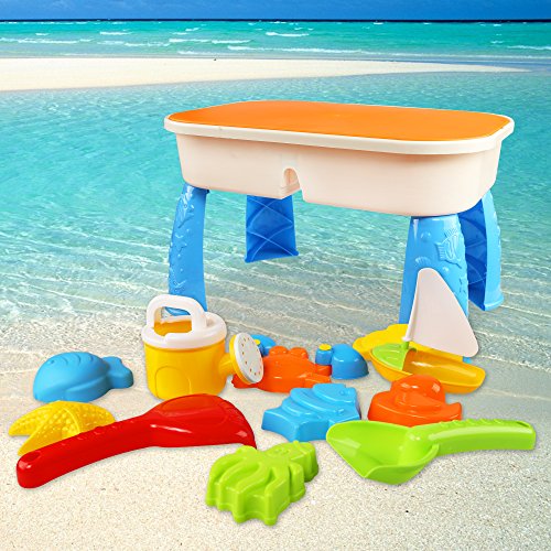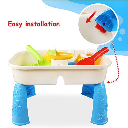 -. Feature : COMPLETELY SAFE FOR KIDS, BABIES AND TODDLERS: BPA-free, non-toxic, phthalate-free and lead-free, ASTM HR4040 AND CIPSA approval. Independently lab-tested and certified. / HIGH-QUALITY MATERIALS: This 2-in-1 sand play table for kids is made of durable materials that are built to last for years. No more buying spare parts or breaking things by accident - it works beautifully as both a sturdy table for homework and crafts, and a sand box for playtime. / UNLIMITED FUN: Your child will be entertained for hours on end with all of the sand box toys that come in this fun-filled package. With 11 colorful and creative different ones to choose from, there is no limit to the creativity and enjoyment that your toddler can experience. / EASY CLEAN-UP, NO MORE MESS: Many sand tables for kids end up getting dirty and rotten over time because it's too hard to clean them up. Fortunately, this sand box toy can easily be disassembled for easy cleaning, and put back together in an instant. In the blink of an eye, your baby can start having fun again! Plus, it comes with kinetic sand, a special type of sand feels JUST like real sand without the stickiness or the mess. / PORTABLE - CAN GO ANYWHERE IN SECONDS: Your child will want to take the sand play table everywhere they go, and you don't want to worry about having room for it in your car storage. You can quickly take the table apart without any tools or instructions whatsoever, and put it back together just as fast. It's the perfect in home AND outdoor game for kids of all ages!