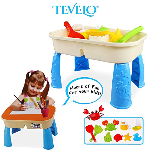 -. Title : 2 in 1 Water Table & Sand Box For Kids, Includes 11-Piece Beach Play Toys For STEM Creativity And Fun!