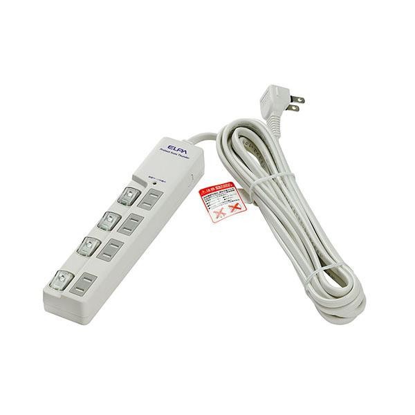 雷から接続機器を守る耐雷サージ機能付きの、スイッチ付タップです。 製造国:中国 ※サプライヤー直送品 ご注文後3~4営業日後の出荷となります【商品名】ELPA(エルパ) 耐雷サージ LEDランプ スイッチ付タップ(上差し) 5m 4個口 ホワイト WLS-LU450MB(W)