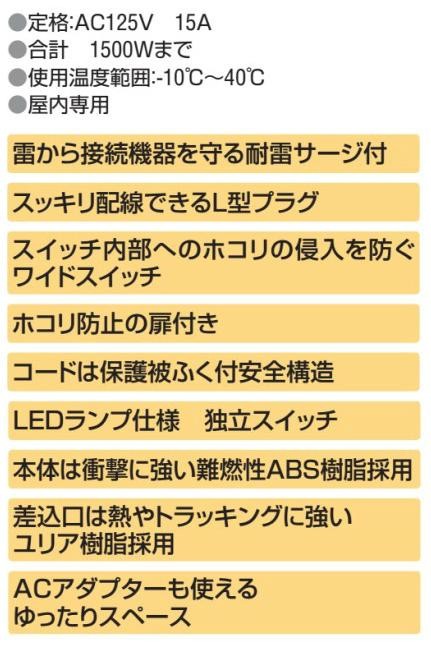 雷から接続機器を守る耐雷サージ機能付きの、スイッチ付タップです。