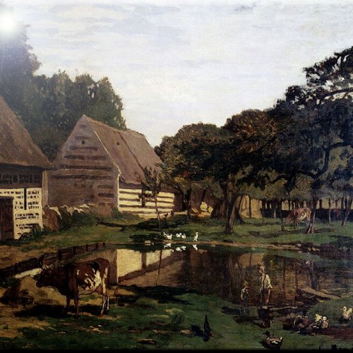 Rikki Knight RK-12intilec-3471 12" X 12" Claude Monet Art A Farmyard in Normandy Design Ceramic Art Tile