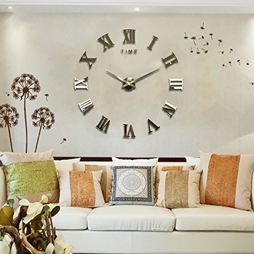 Modern Roman Large Wall Clock DIY Frameless Time Letters 3D Removable Mirror Surface Wall Clock for Home, Office, Bedroom, Living Room Decor (Gold)