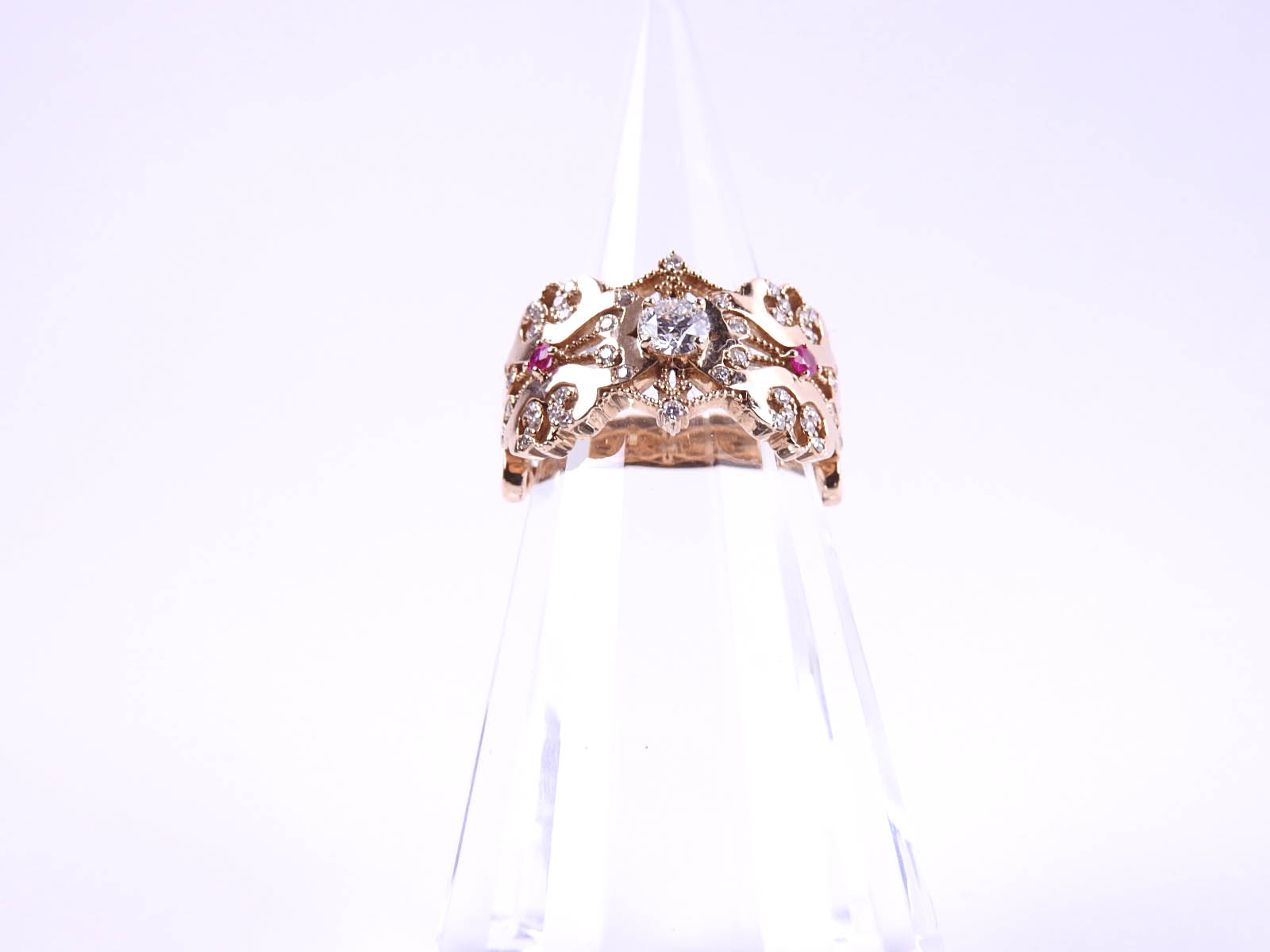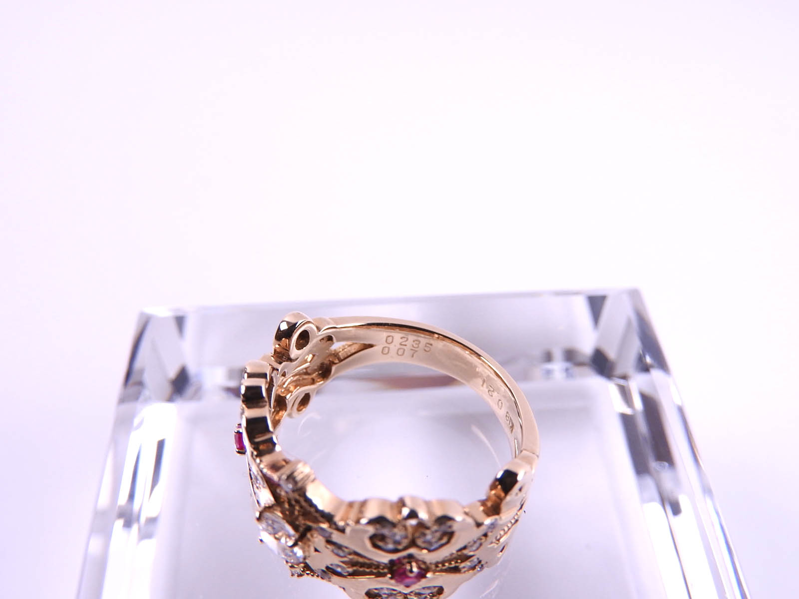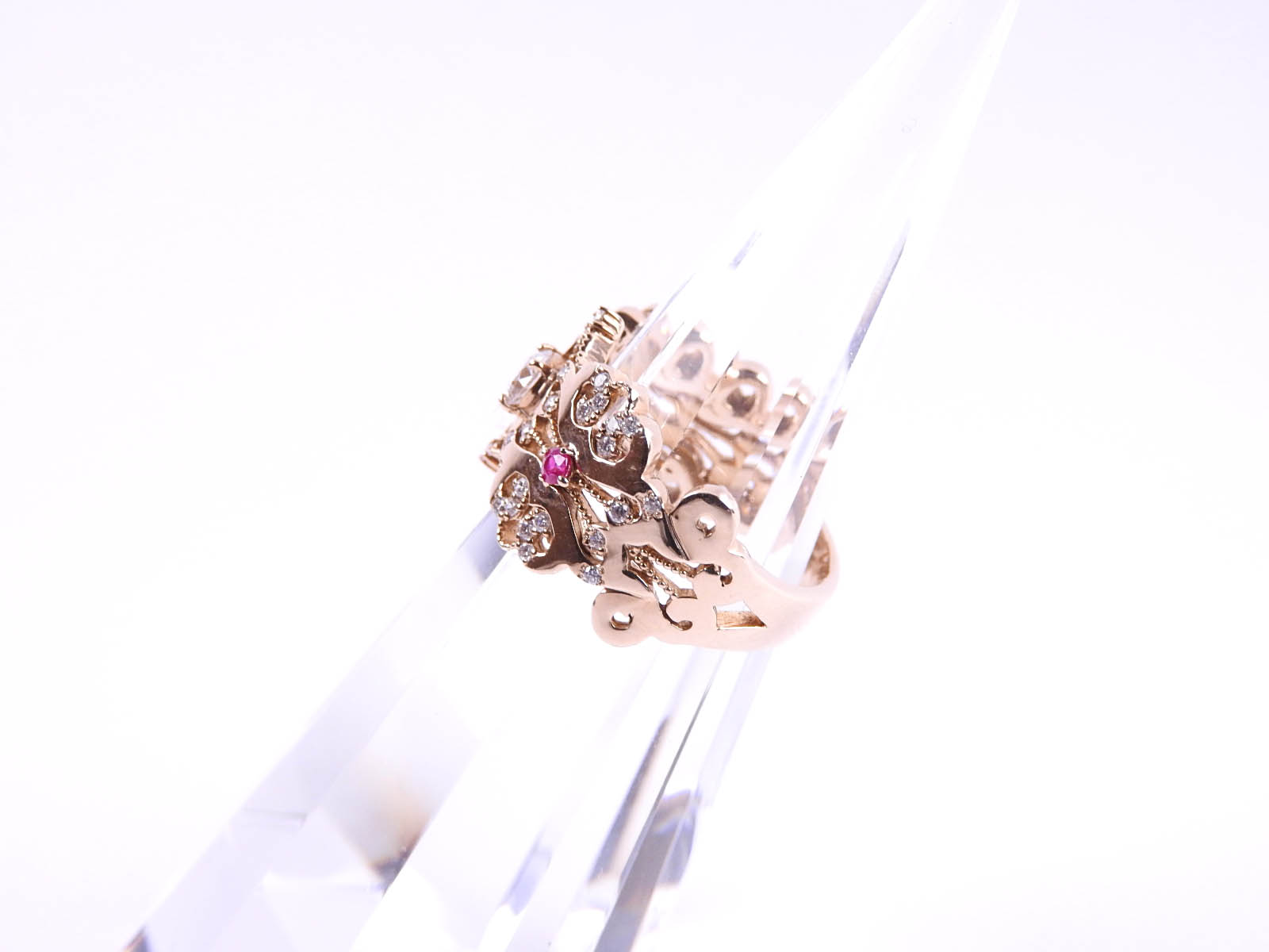 | Material | One piece of Diamond×Mele Diamond×Ruby×K18 Yellow Gold |
