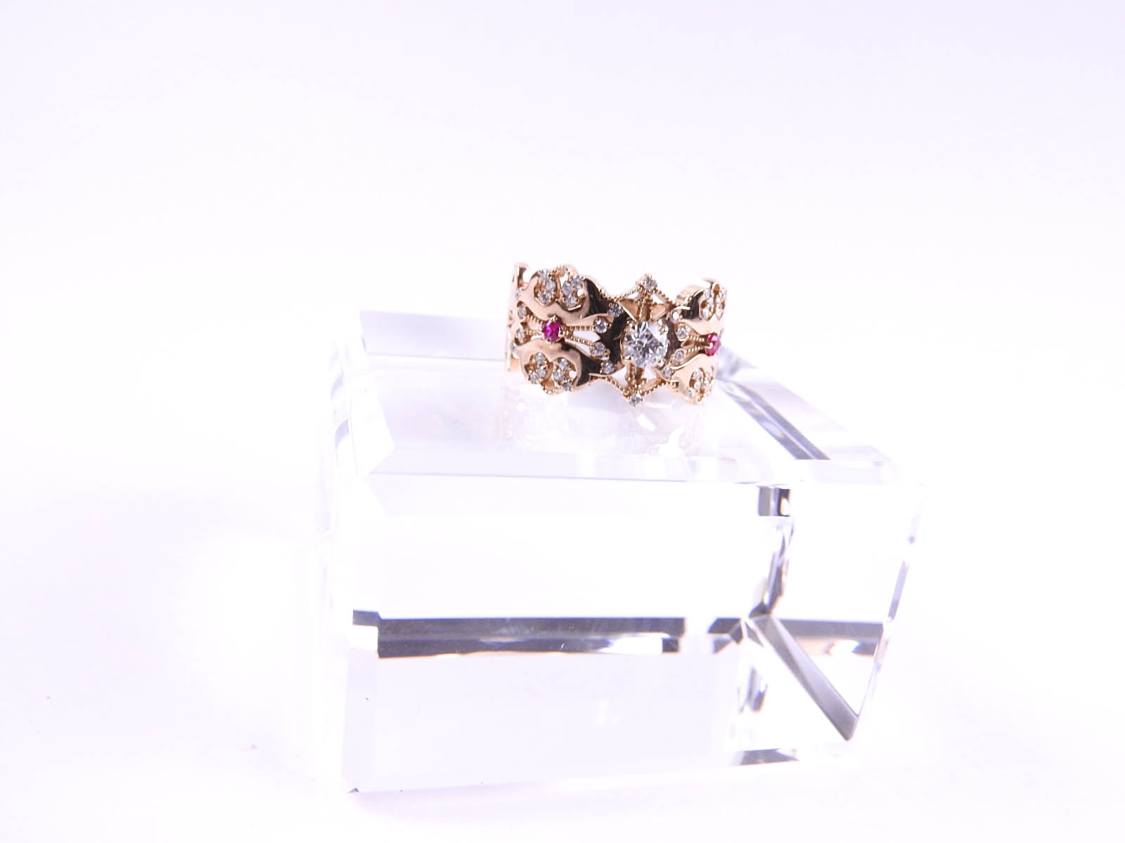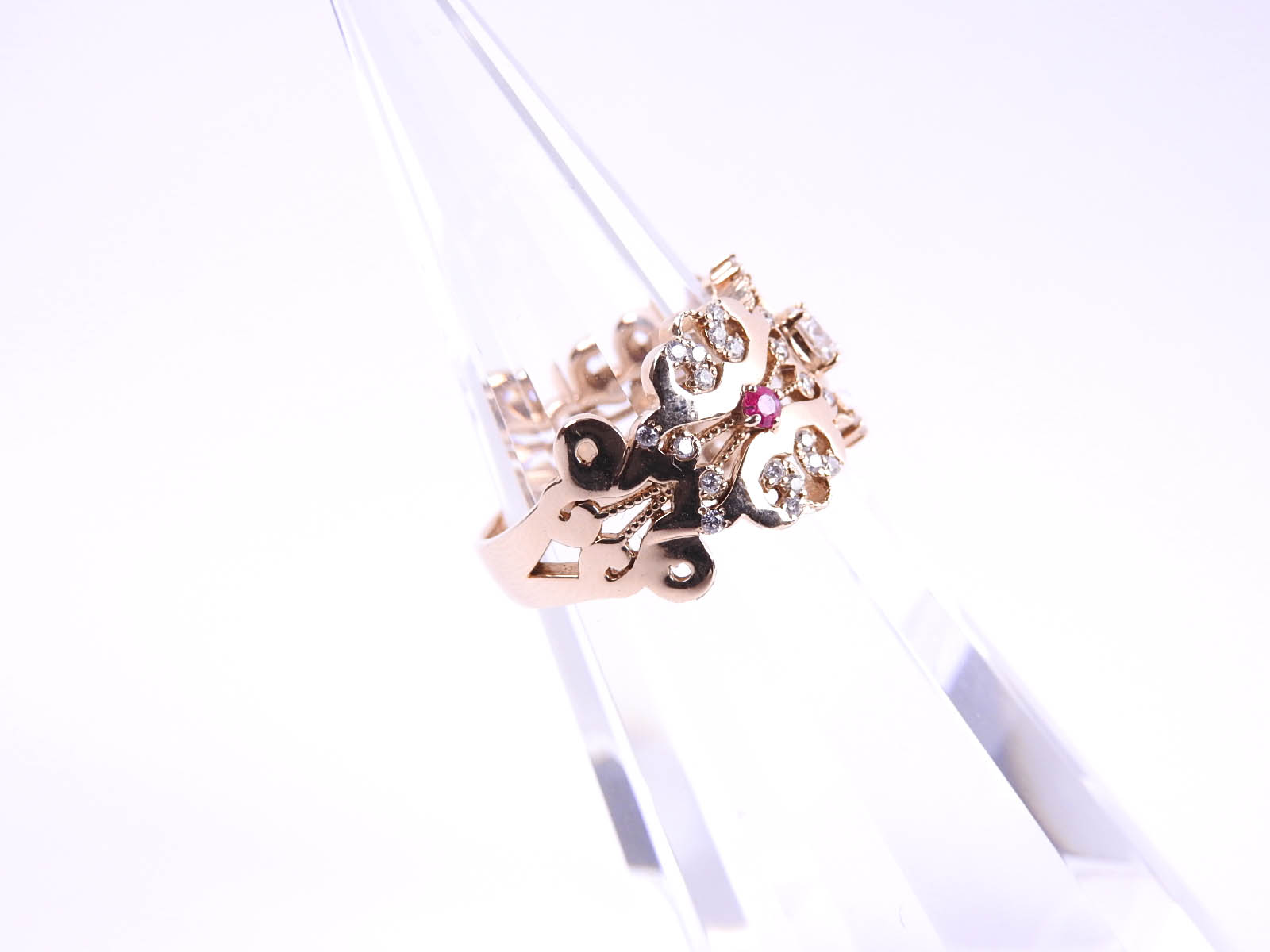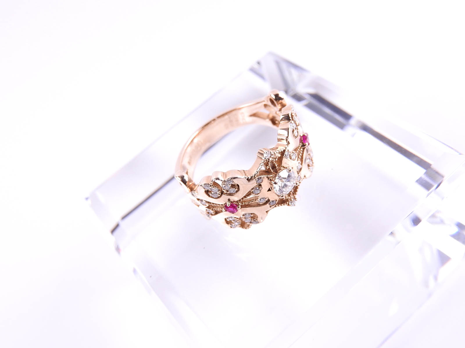 | Material | One piece of Diamond×Mele Diamond×Ruby×K18 Yellow Gold |