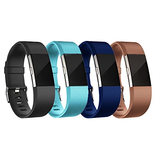 Fitbit Charge 2 Bands Replacement with Metal Clasp (4 Pack Small) Comfortable and Flexible Silicone Wristband Huadea