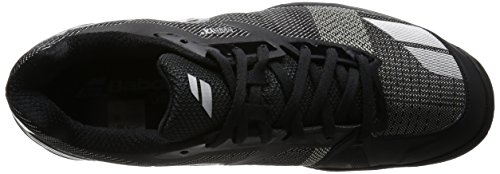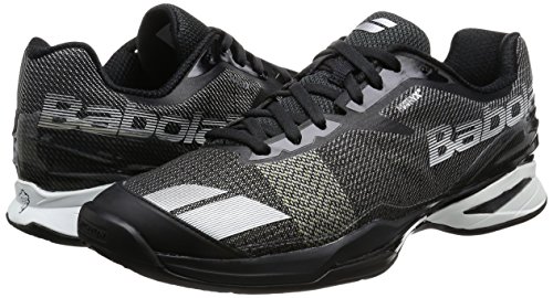 Binding : Apparel Product Description The Babolat Jet Men's Clay Court tennis shoe is made for players looking for ultimate performance in an ultra light and supportive shoe. The Jet is ultra lightweight and allows you to fly around the court and chase down every ball. Active flexion technology provides maximum responsiveness, while Matryx technology provides lightweight stability and a custom fit feel. Features: Upper: Patented MatrYX High performance technical fabric upper specifically designed for tennis players' needs. Made with ultra-durable Kevlar and Polyamide fibers woven into targeted zones for an incredibly lightweight and stable shoe with a custom fit feel. Midsole: Ti-Fit Slim last offers the ideal balance of comfort and stability Ortholite memory insole offers lightweight, long lasting comfort. Shock absorbing tubes filled with Thermo Plastic Rubber in the midsole add comfort and reduce impact. Reinforced counter ensures greater stability, minimizing energy loss and maximizing responsiveness. Outsole: Active Flexion technology provides optimum agility, precision, and speed. Michelin outsole with an exclusive S pattern allowing for quick change of direction along with excellent traction and durability. Additional rubber protection in high-wear areas for enhanced durability. 0